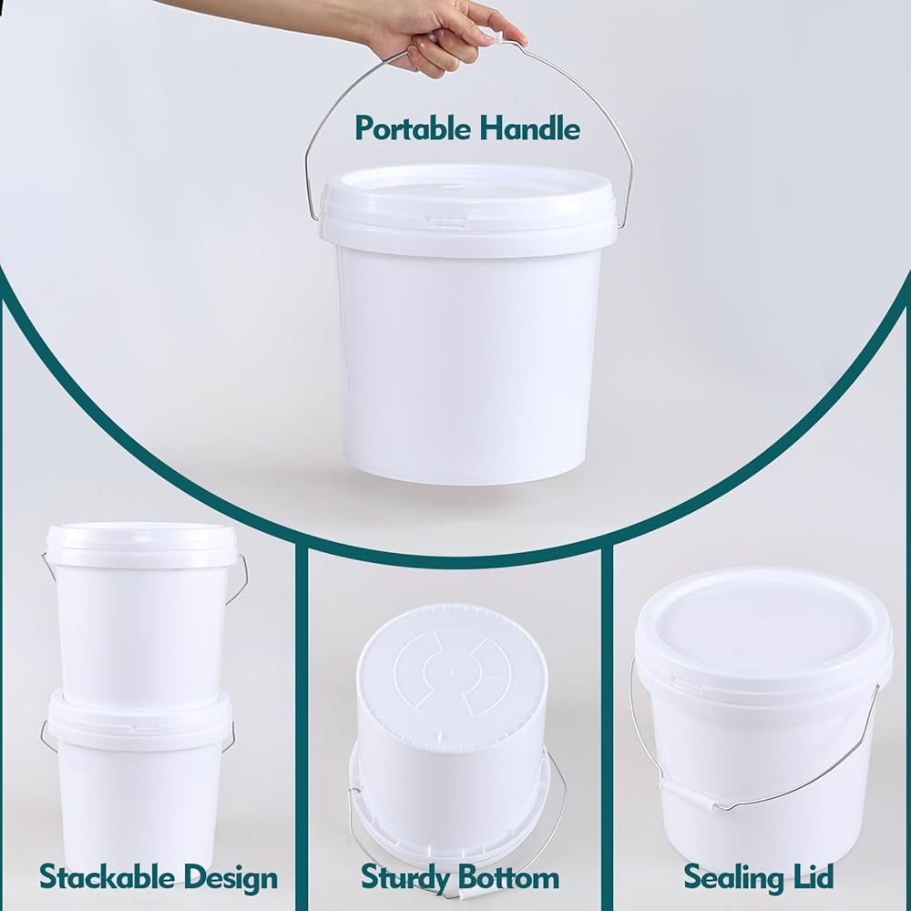 The bucket pail features an easy-to-carry handle and a secure sealed lid design that help keeping your supplies stored safe, effectively avoiding dust from entering