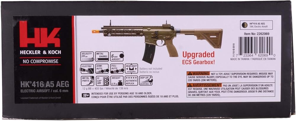 HK Heckler & Koch 416 A5 AEG Automatic 6mm BB Rifle Airsoft Gun, Tan
