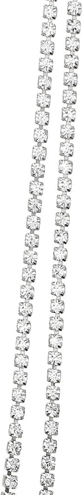 This exquisite necklace of clear glass crystal rhinestones set in a polished prong setting. desiign has a vintage feel.