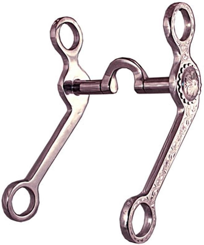 Robart Pinchless Low Port Grazing Bit Robart Patent #6449930 A revolutionary idea and bit design to implement it. Instead of training and working a horse on the basis of creating pain and the anticipation of pain, the patented David Robart bit corrects by pressure and eliminating the pain. Truly a clever design. This bit is designed as a low port grazing bit with aluminum engraved cheeks. Overall length of cheek piece is 8 1/2. Designed for horses that tend to over bridle. Manufacturer is not responsible for misuse of product. Size: 5.