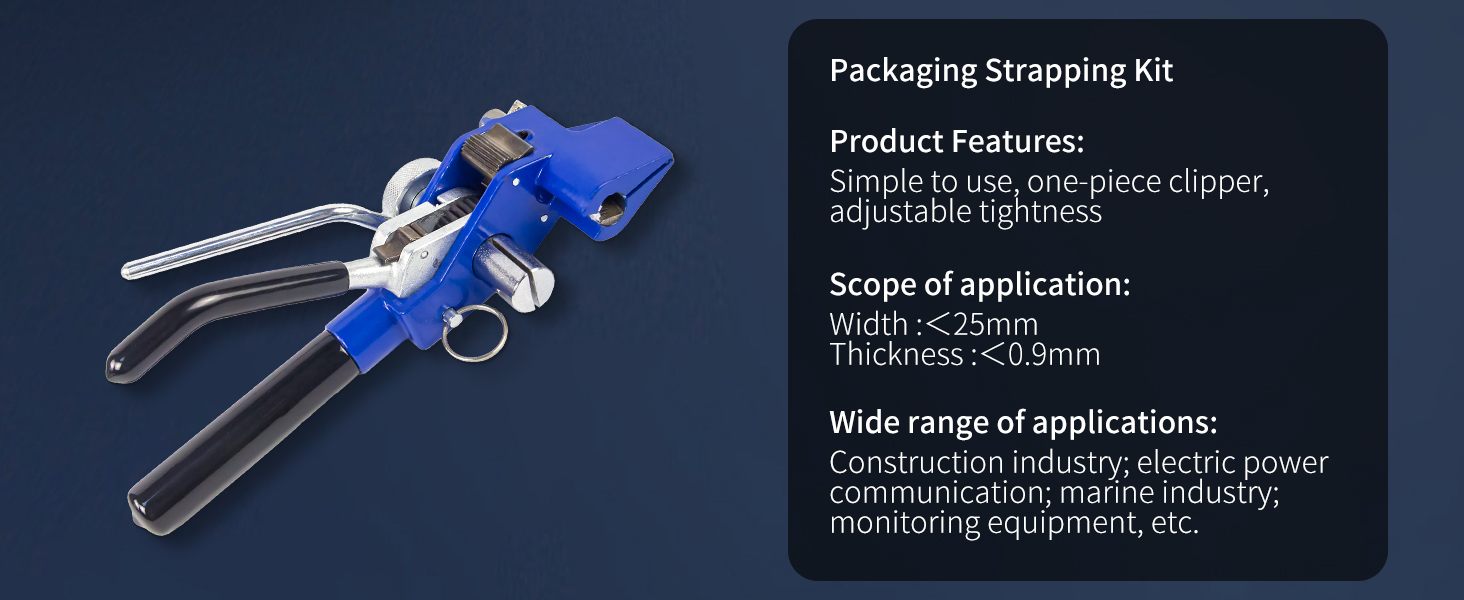 【multiple sizes applicable】Our packaging strapping tool adopts a tensioning belt and a cut-off cable tie function, can be applied to various specifications of stainless steel strapping band which 0.18" - 0.98" in width, 0.01" - 0.047" in thickness. Pull force up to 2400N.