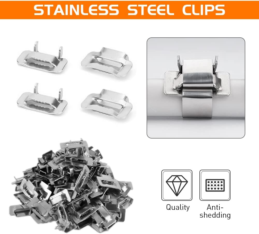 【comes with 100 pieces strapping buckles】Stainless steel strapping buckles used in combination with 3/4" steel banding or strapping.