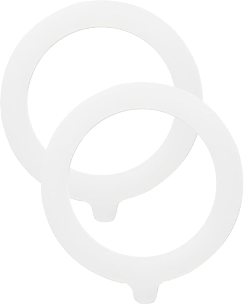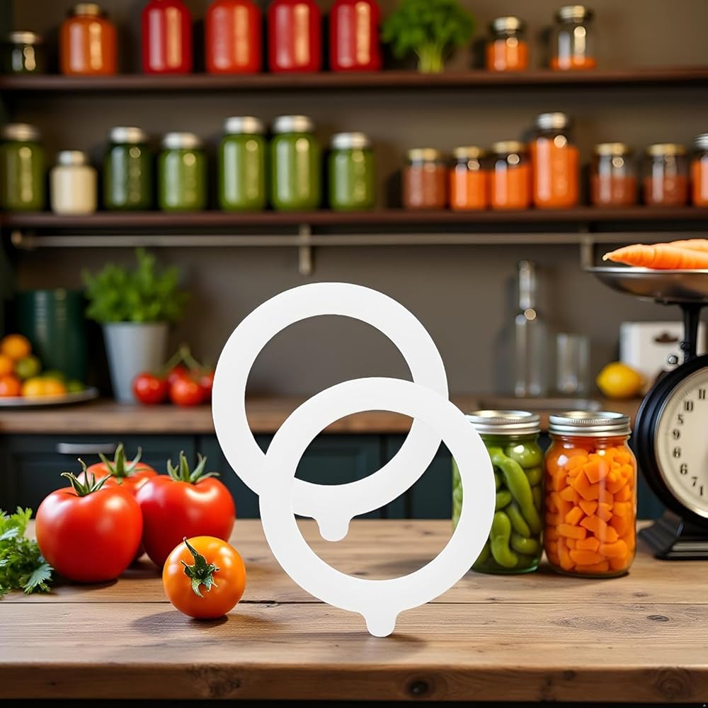 Package Contents: Set of 2 white silicone gaskets designed as replacement seals for mason jar lids, providing reliable sealing performance