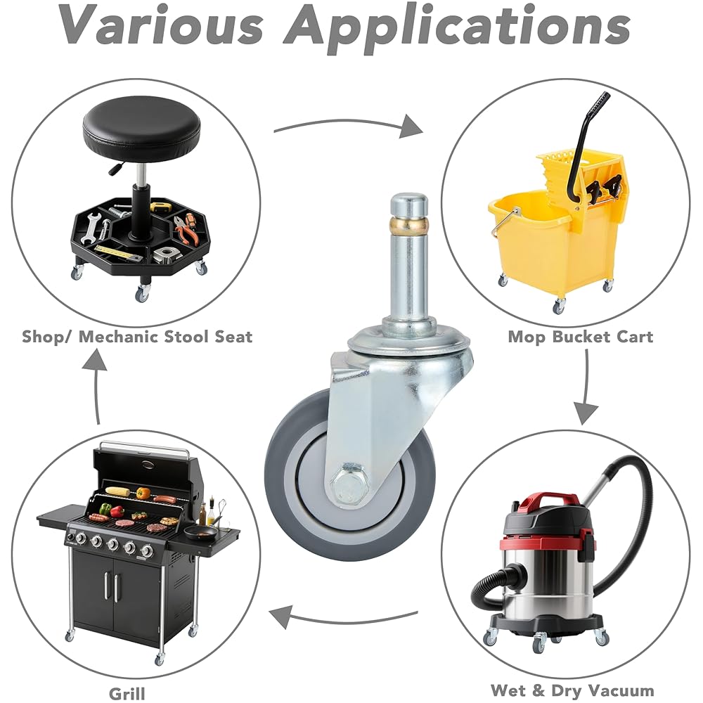 UNIVERSAL: Perfect casters replacement for your mop bucket cart, grill, wet & dry vacuum, tool carts, shop/mechanic stool seat, metal rolling cart, garage shop rolling seat, utility cart etc. Also It can make your workbench, work stool, shop stool chair, workbench, work table, furniture, home appliances or any other gadget you need move easily and roll smoothly. Save your labor and time.