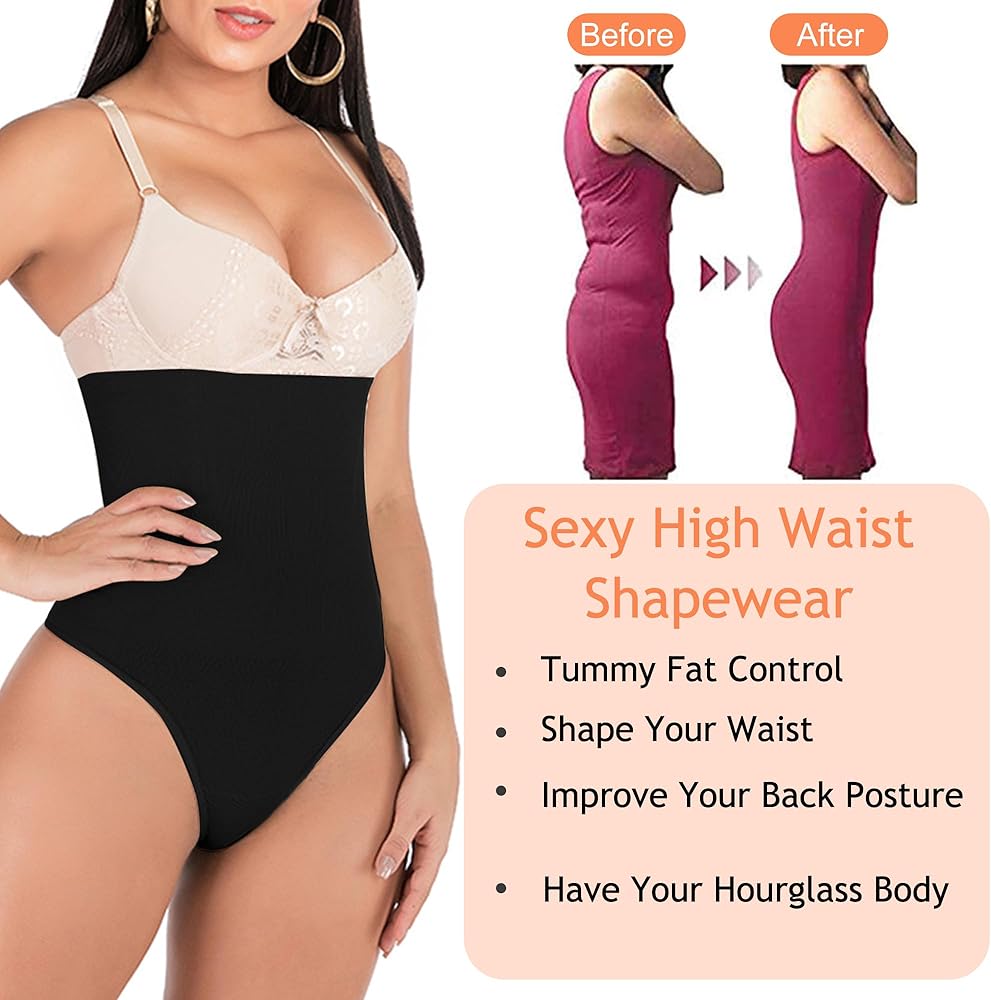 EVERYDAY WEAR - High quality fabric breathable and comfortable enough to be worn all day long. Seamless under clothes. Shapewear for women thongs shape short torso or long torso. High waist shaper thong is tight through the ultra-high elastic material body, to achieve body sculpting effect.