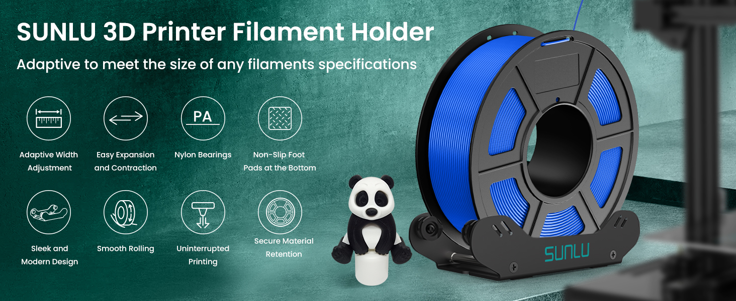 ⑤【Wide Applicability】 SUNLU 3D Spool Holder is suitable for 1kg/2kg/3kg/5kg filament spools, accommodating all types of printing materials including PLA, PETG, ABS, Nylon, Wood, and TPU. It offers free adjustability and smooth rolling.