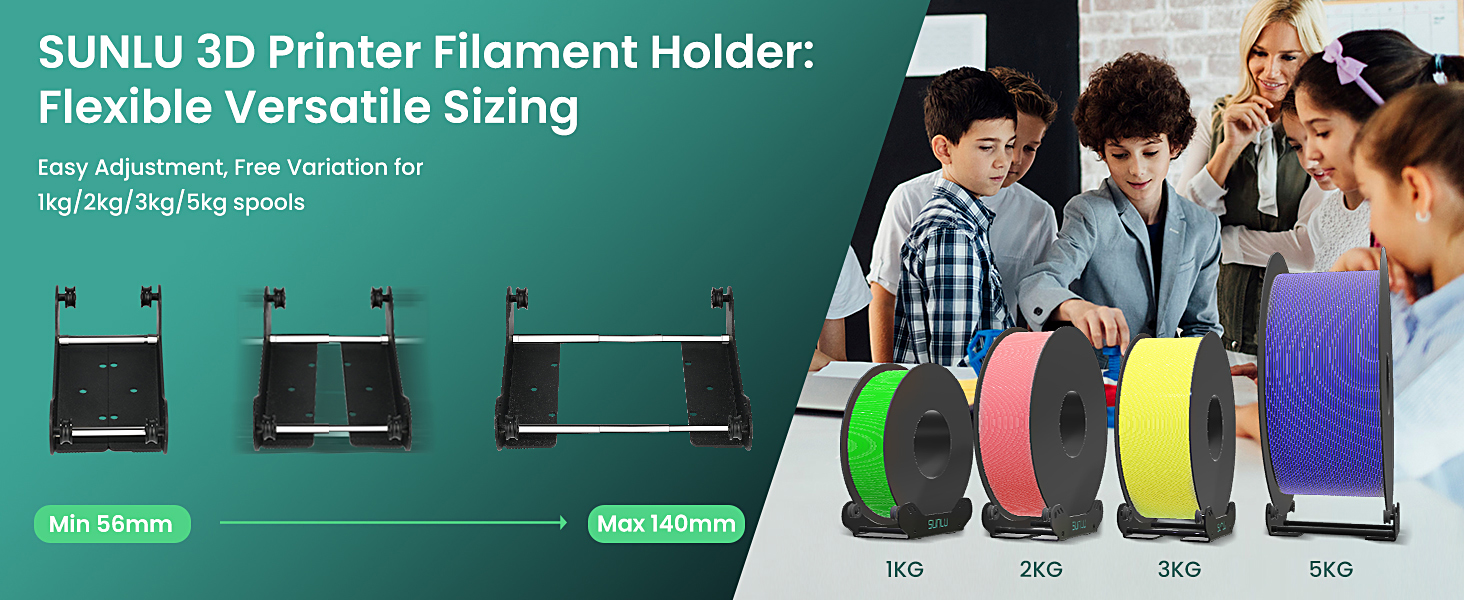 ①【SUNLU 3D Printer Filament Holder】The adjustable design of the 3D filament rack is suitable for different specifications and sizes of filament spools (56mm-140mm), ensuring perfect compatibility with various types of spools.