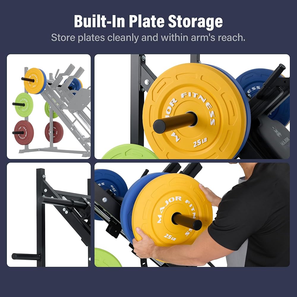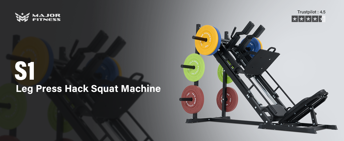 𝐀𝐥𝐥-𝐢𝐧-𝐎𝐧𝐞 𝐋𝐞𝐠 𝐏𝐫𝐞𝐬𝐬 & 𝐇𝐚𝐜𝐤 𝐒𝐪𝐮𝐚𝐭: The Major Fitness Drone S1 combines a 45° leg press and hack squat in one machine, delivering serious lower-body training for quads, glutes, hamstrings, and calves—without the spinal stress of free squats.
