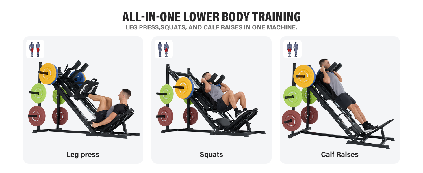 𝐁𝐮𝐢𝐥𝐭 𝐟𝐨𝐫 𝐇𝐞𝐚𝐯𝐲 𝐓𝐫𝐚𝐢𝐧𝐢𝐧𝐠 & 𝐒𝐚𝐟𝐞𝐭𝐲: Designed for Olympic plates, this leg press supports intense strength progression. Dual side safety handles allow fast lock-in and lock-out, while the oversized diamond footplate delivers secure traction on every rep.