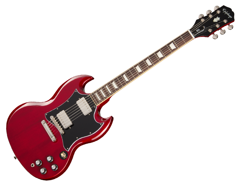Part of the Inspired by Gibson Collection, the Epiphone SG Standard has been refreshed and is better than ever. The legendary SG has long been a favorite of musicians across genres. From Sister Rosetta Tharpe, Eric Clapton, and George Harrison to Robbie Krieger, Angus Young, Tony Iommi, and countless others, the SG has been played by many of the most beloved guitarists in history. The Epiphone SG Standard features a contoured, double-cutaway mahogany body, providing The Epiphone SG Standard features a contoured, double-cutaway mahogany body, providing unimpeded access to all 22 frets. The glued-in mahogany neck adds to the model's renowned sustain. The neck has a fast-playing SlimTaper C profile and is capped with a bound rosewood fretboard, equipped with 22 medium jumbo frets, and adorned with pearloid trapezoid inlays. The fretboard' s 12” radius makes playing first-position chords easy while ensuring that string bends don't fret out when you play them. High-quality Grover Rotomatic tuning machines and a Graph Tech nut, paired with a fully adjustable Epiphone LockTone Tune-O-Matic bridge and Stop Bar tailpiece, work together to maintain rock-soli d tuning stability and intonation. The Epiphone SG Standard is equipped with a pair of Epiphone's acclaimed ProBucker The Epiphone SG Standard is equipped with a pair of Epiphone's acclaimed ProBucker humbucking pickups that deliver all of the vintage-approved SG tones you could ask for. A ProBucker 2 humbucker is in the neck position, and a slightly hotter ProBucker 3 is install ed in the bridge position. Each of the pickups is wired to its own individual volume and tone controls, along with a three-way toggle pickup selector switch, which lets you use either pickup alone or combine them in whatever ratio suits your mood and muse. The Epiphone SG Standard is sure to turn heads and will impress players and fans alike. It comes complete with a premium gig bag to help keep it safe when traveling.