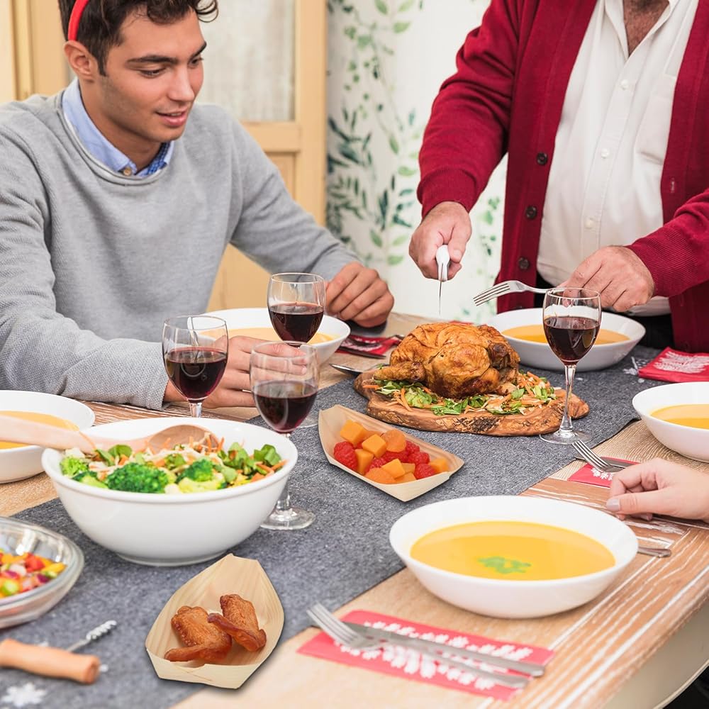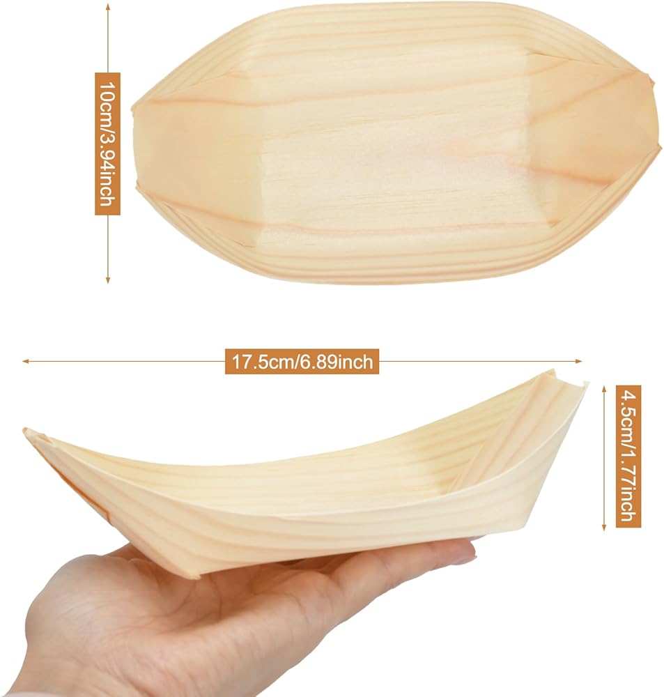 🌿Made from natural wood, these disposable boats are a sustainable alternative to plastic plates. Perfect for eco-conscious hosts who want stylish yet planet-friendly serving solutions.