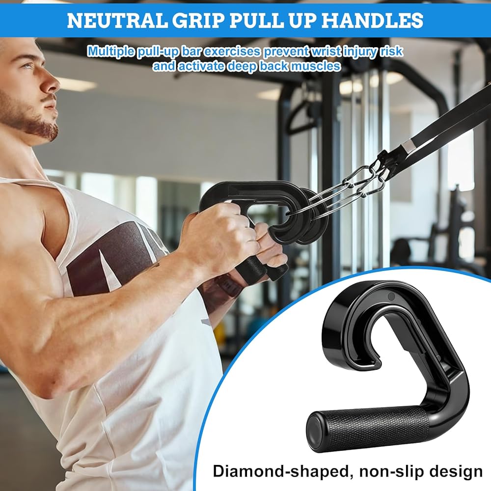 【Suitable for a Variety of Equipment】These multifunctional neutral grip pull up handles aren't just for pull up bar grips—they're a versatile addition to your workout accessories. Transform your home gym into a full-service training space: use them for lat down exercises to target your back muscles, attach them to resistance bands for dynamic strength training, or pair them with barbell grips to enhance grip control. The ergonomic design ensures that all your movements remain comfortable.