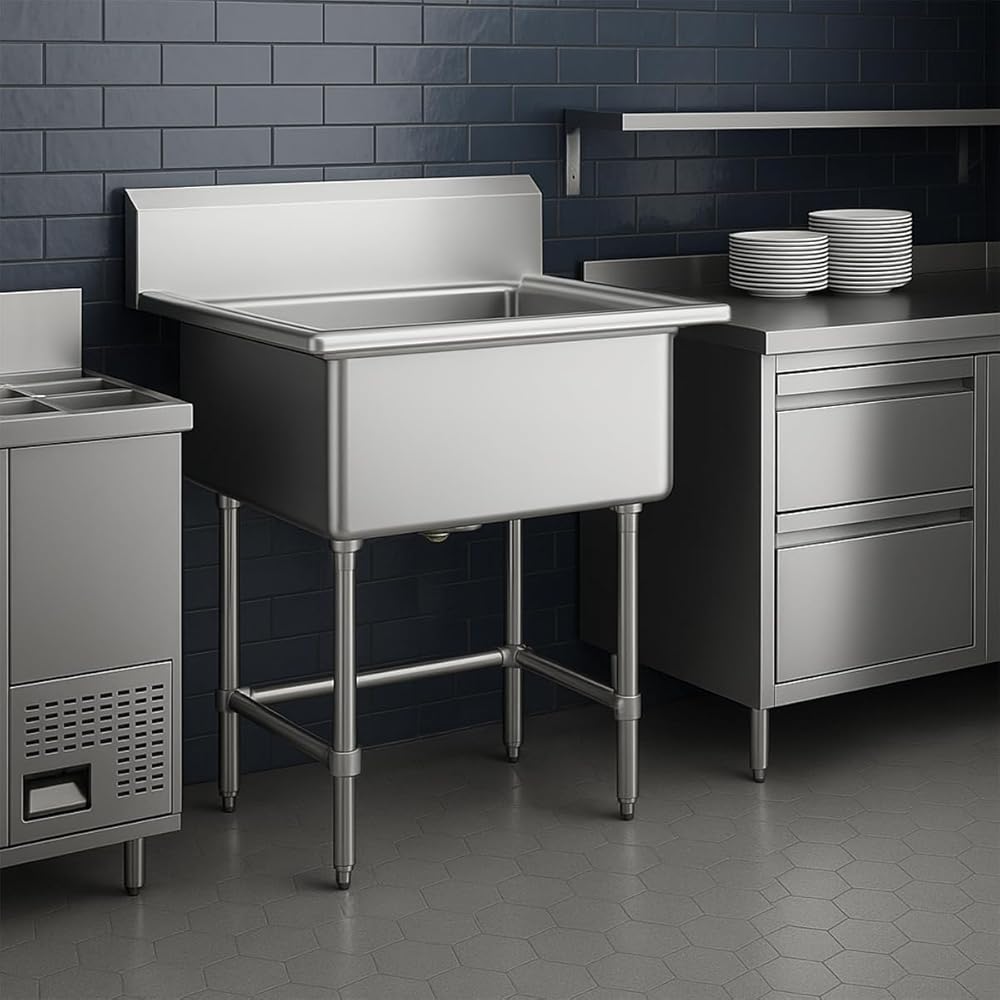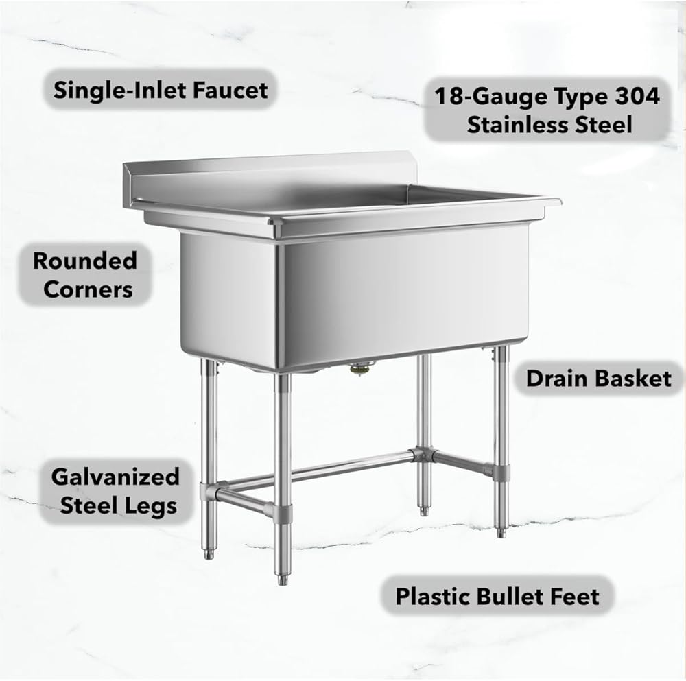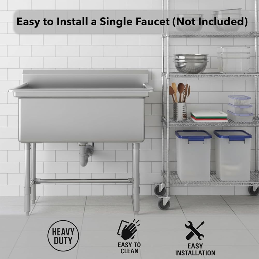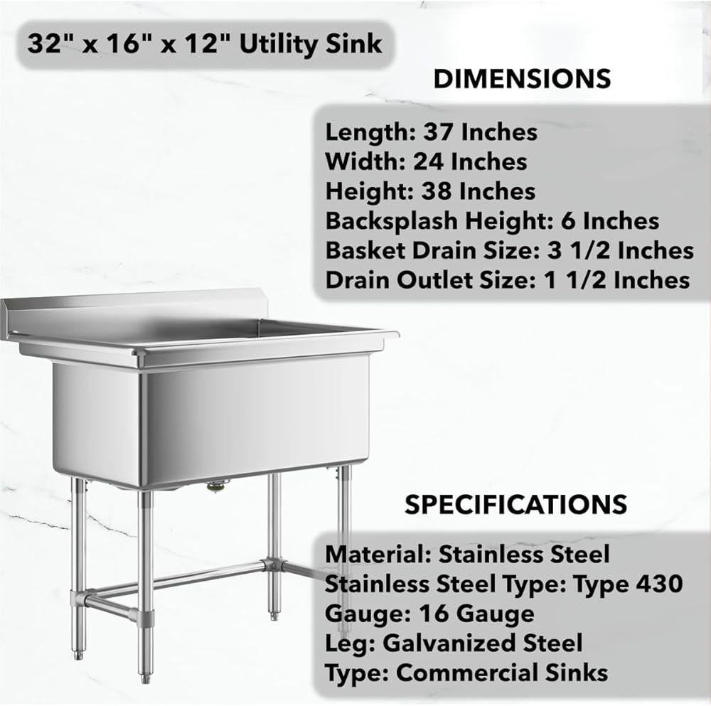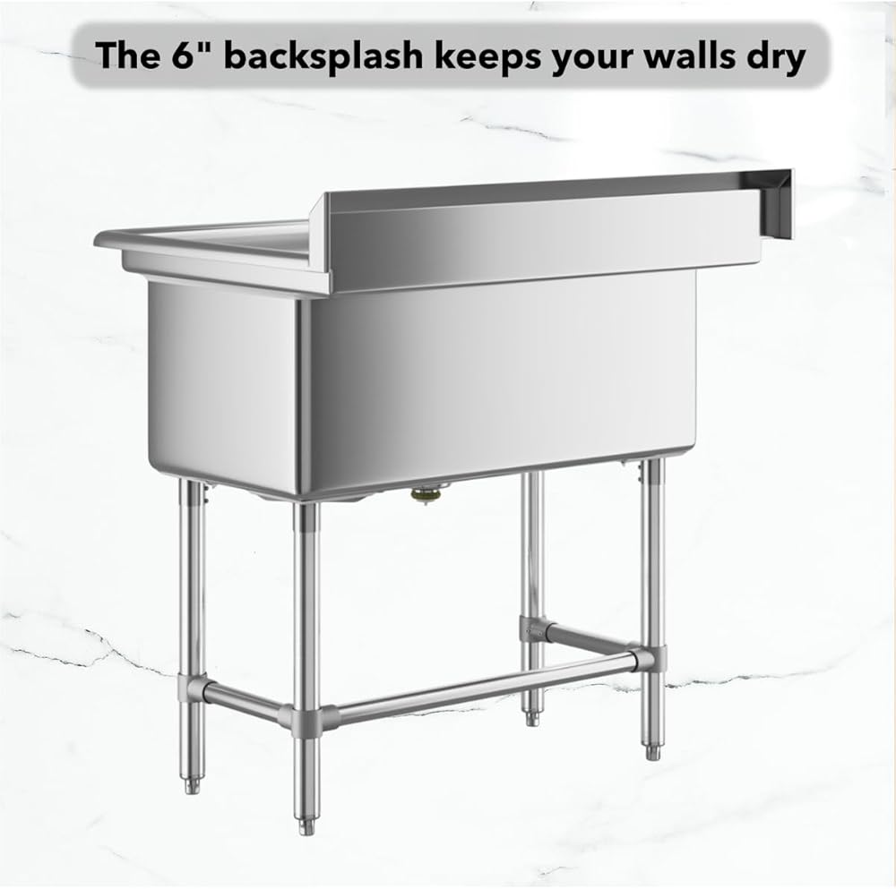 Designed for commercial and utility applications, these sinks are made from 16-gauge, type 304 stainless steel to provide strength, reliability, and ease of cleaning. Each sink comes with a 12" deep single bowl featuring rounded corners for easier sanitation, a protective 6" backsplash, and a rolled front edge that helps contain splashes and overflow.