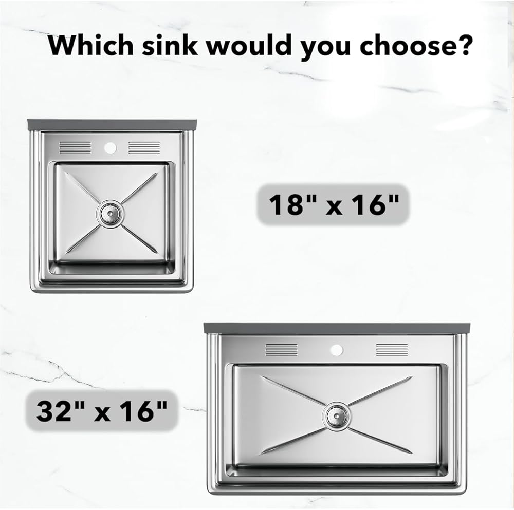 32" x 16" – Wider model, offering additional bowl capacity for busier kitchens and commercial use.
