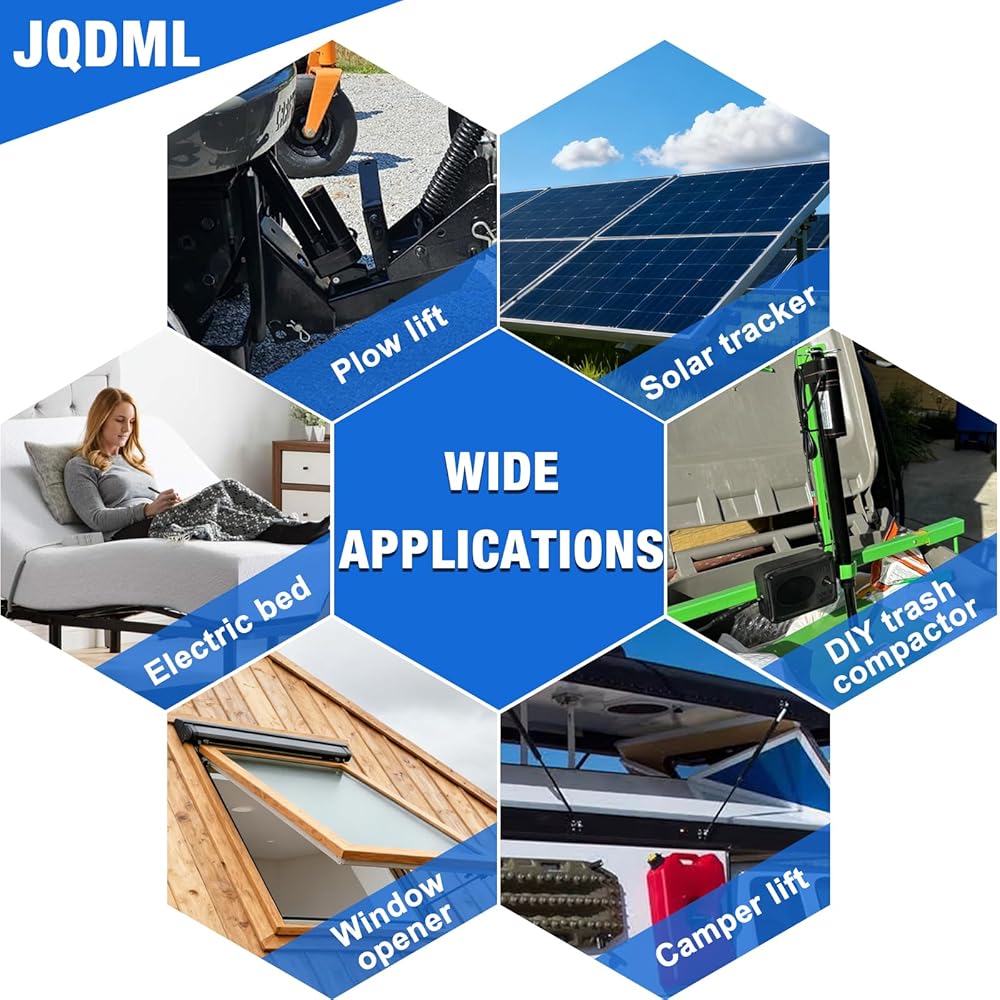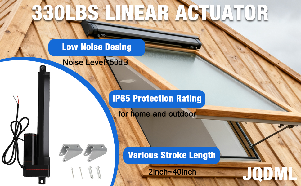 Fast & Quiet Motion:JQDML 1500N linear actuator is equiped with high speed motor which make the travel speed up to 0.394"/sec.The linear actuator adopts high-strength plastic worm gear with more quiet and durable,not easy to oxidize,noise below 50dB.