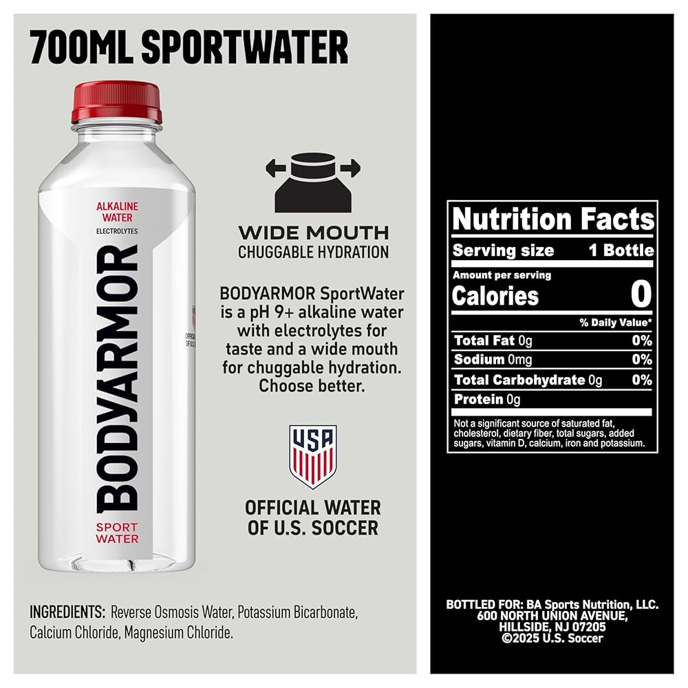 BODYARMOR SportWater is the only choice for those who want Superior Hydration for their active lifestyle. With a high-performance alkaline level of pH 9+, BODYARMOR SportWater's proprietary electrolyte formula comes with a sport cap for on the move hydration.