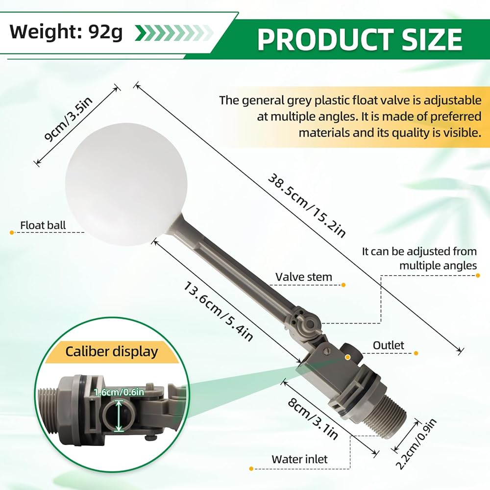Leak free design: The water float valve is equipped with rubber gaskets to ensure a tight and leak free setting. This feature improves the efficiency of the valve, ensuring minimal water leakage and reducing water bills.