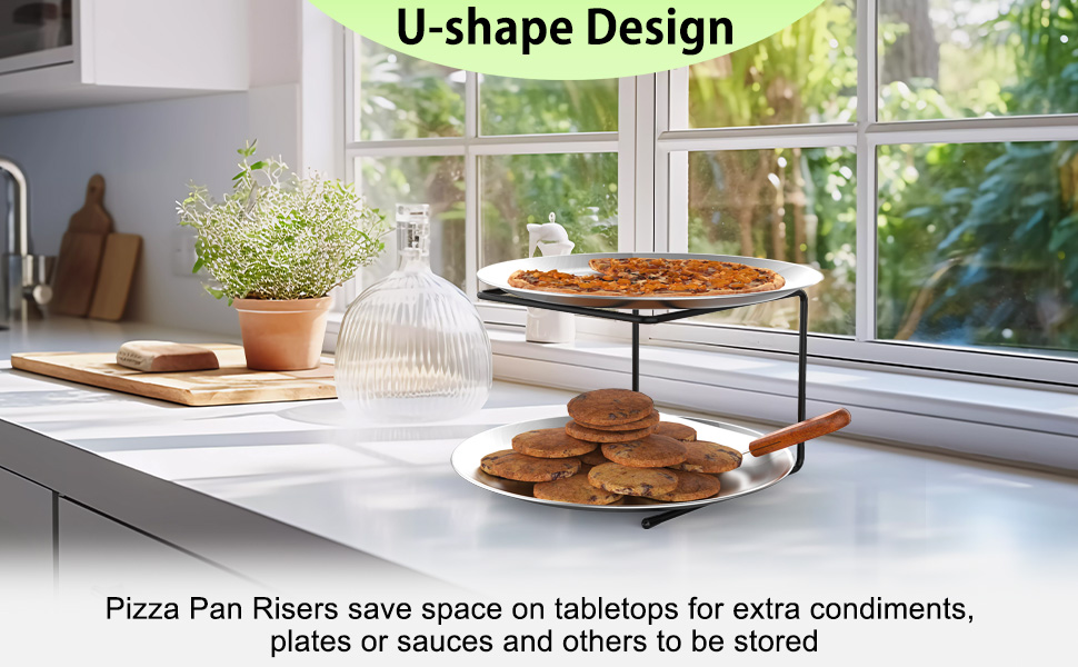 U-shape Design - Pizza Pan Risers save space on tabletops for extra condiments, plates or sauces and others to be stored