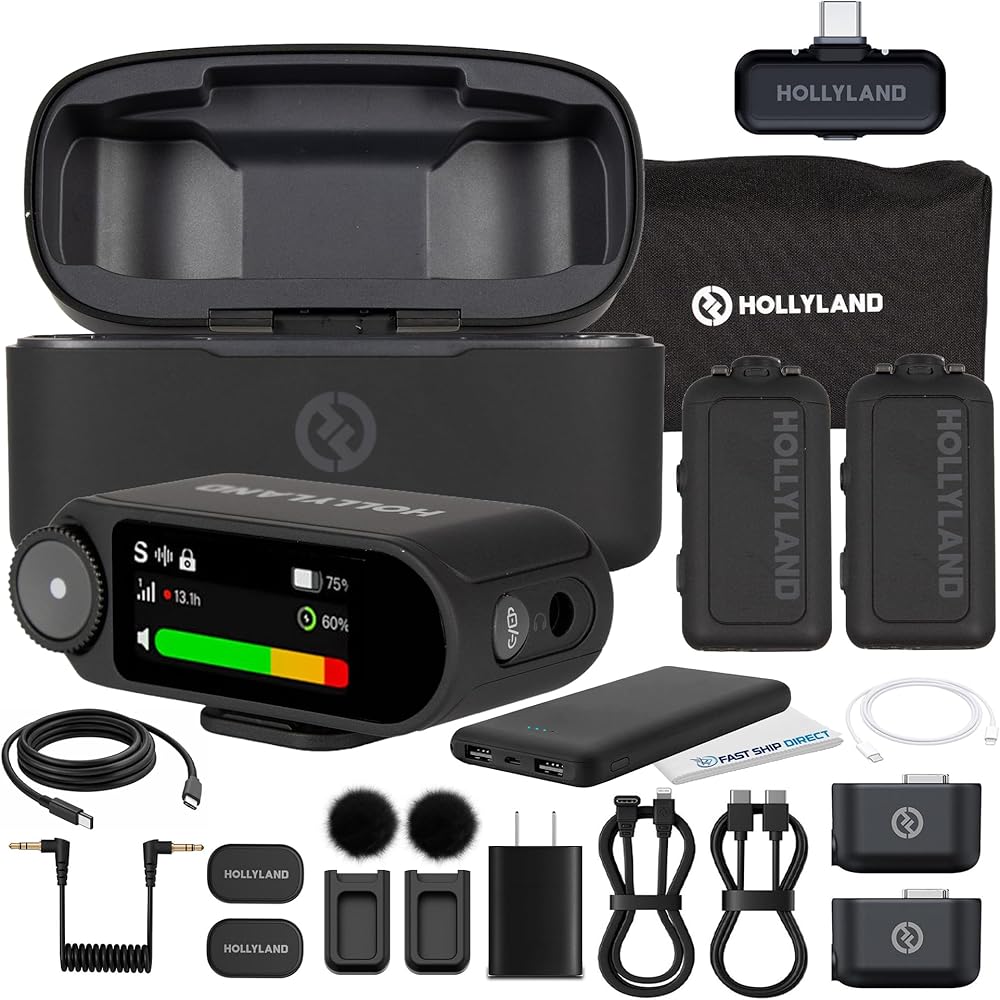 • Bundle Includes: Hollyland Lark MAX 2 Wireless Microphone Combo (Space Gray) + USB C to Male USB C Cable + P-Bank Battery + USB Type-C Adapter Plug + USB Type A to USB Type C cable + Microfiber Cleaning Cloth + Lightning to USB-C Cable