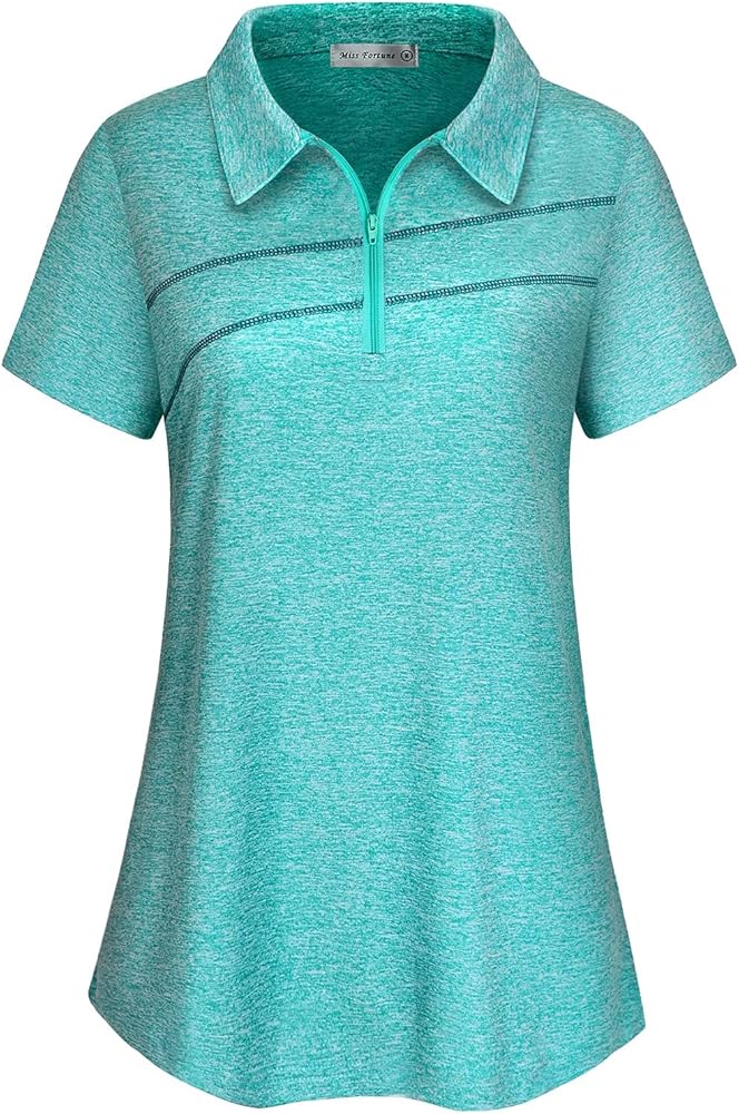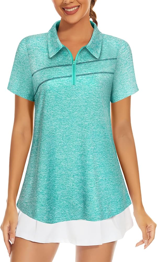 【Quarter Zip Polo shirts】Women polo shirts with adjustable zipper can easily adjust the looseness of the collar, giving you more freedom of movement. Two decorative lines on the front make this 1/4 zip polo shirt more unique.