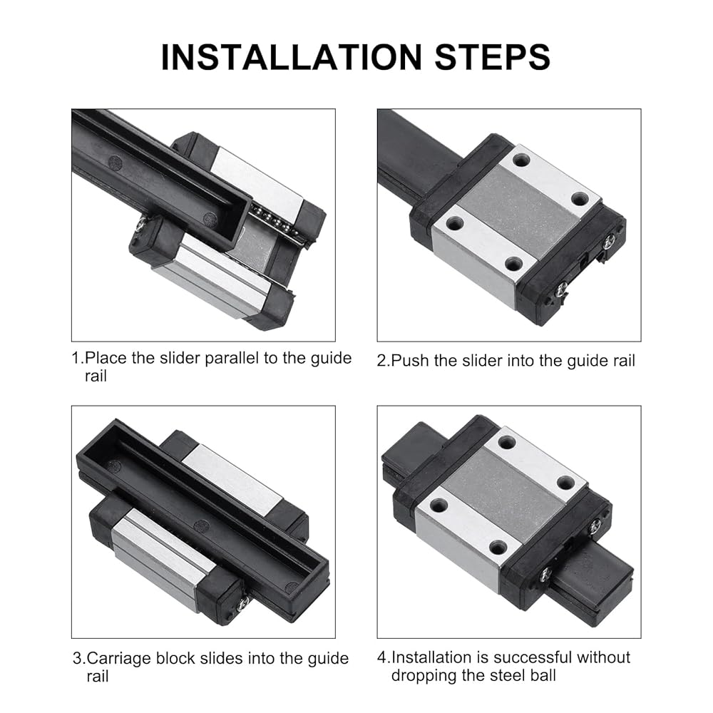 3. To use the bearing carriage block, simply align it with the 9mm MGN9 linear motion slide rail guide and slide it into place. The plastic anti-fall strips ensure a secure fit and help maintain proper alignment and stability during operation.