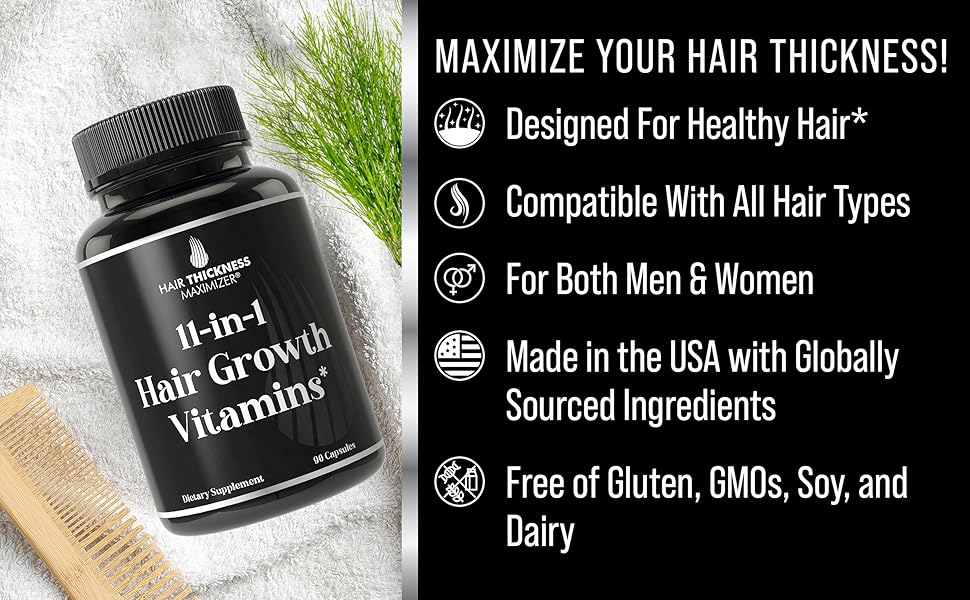Quality You Can Trust: Made in the USA following top-notch GMP standards, our hair vitamins are gluten-free and free from harsh chemicals. Hair Thickness Maximizer ensures every capsule in this 90-count pack is pure and effective, helping you achieve the hair of your dreams safely and naturally