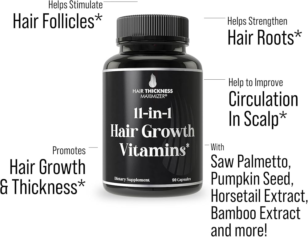 Ultimate Hair Growth Boost: Our 11-in-1 fuller hair vitamins pack a punch with top hair growth vitamins like Biotin, Pumpkin Seed, Horsetail, Saw Palmetto, Zinc, and Copper. These hair growth vitamins are designed to give you thicker, stronger hair with every dose