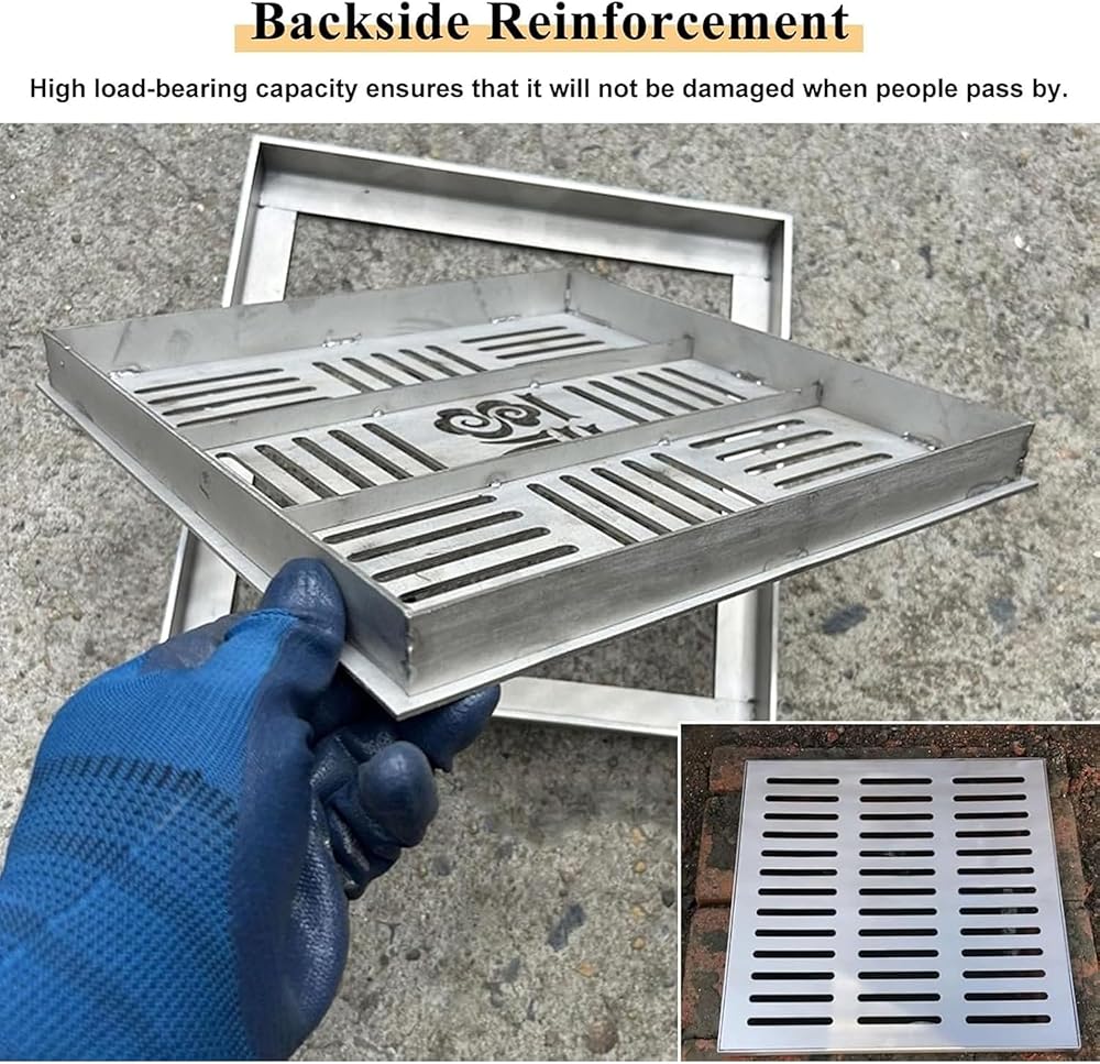 Introducing the Square Stainless Steel Drain Grate with Frame, expertly designed from premium 304 stainless steel to ensure exceptional durability and resistance to rust. This stylish silver drain grate features a practical square shape with a perforated design, promoting efficient water flow for effective drainage. Its user-friendly snap-in installation allows for easy removal without any tools, making maintenance a breeze. This versatile drain grate is perfect for a variety of environments, including kitchens, bathrooms, gardens, driveways, and basements. Whether you're enhancing your outdoor space or improving indoor drainage, our drain grate adapts seamlessly to your needs. With the option to customize size and pattern, it fits perfectly in any setting, ensuring optimal performance while blending with your decor. Each package contains a complete drain grate kit, offering everything you need for installation. Invest in this reliable solution to prevent water buildup and enhance the functionality of your space. Experience the benefits of a well-drained area with the Square Stainless Steel Drain Grate, where quality meets convenience.