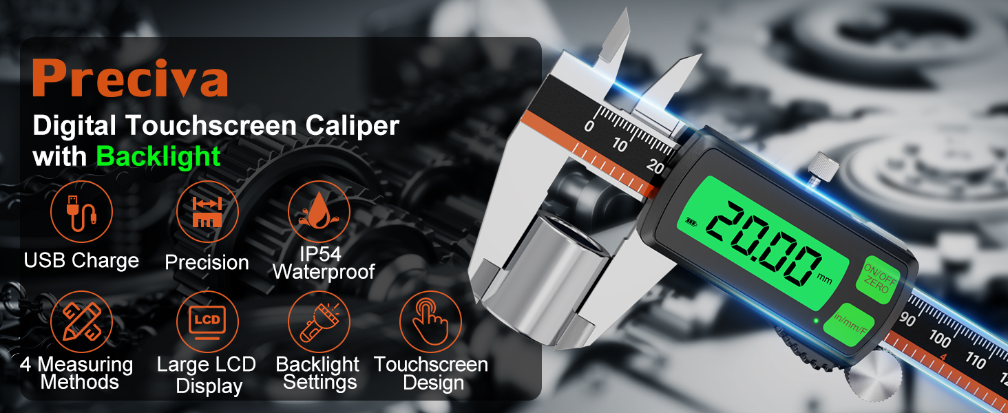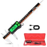 Digital Caliper, Type-C Rechargeable Stainless Steel Vernier Caliper, F/MM/in Conversion, Large LCD, USB Charging Digital Caliper Measuring Caliper for DIY, Woodworking & Professional Use (Black)