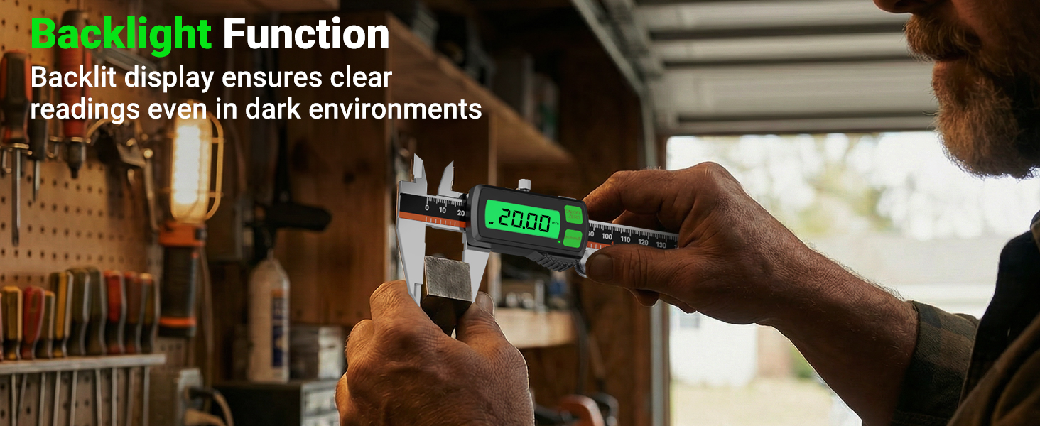 📏 Three Display Modes: Instantly switch between millimeters (mm), inches (in), and fractions (F) for flexible, accurate readings that fit your workflow.