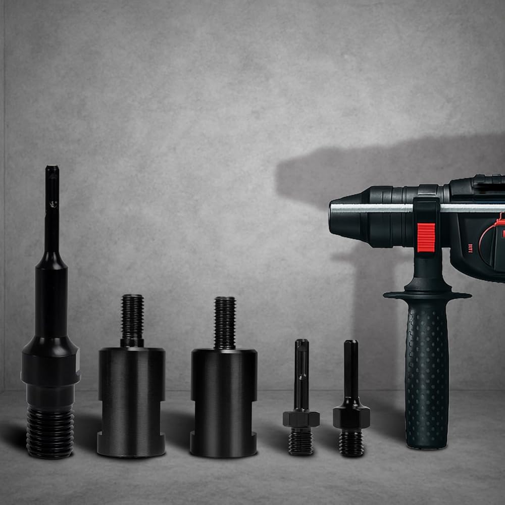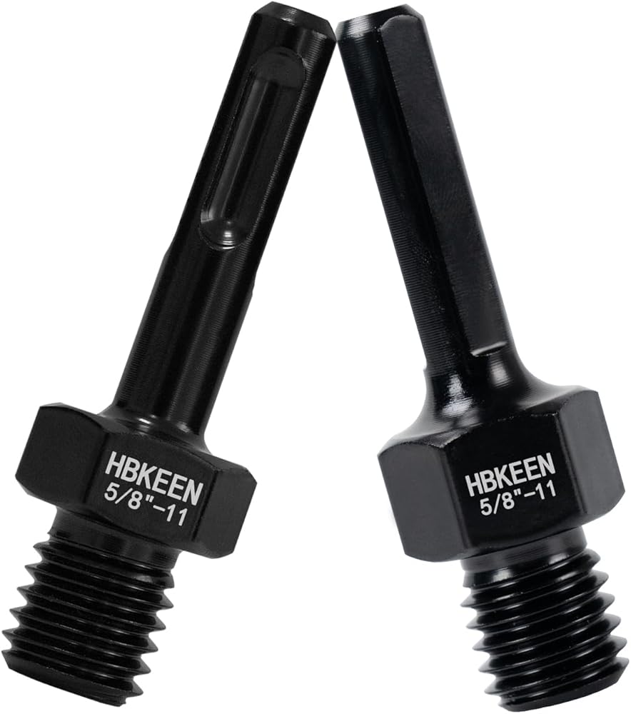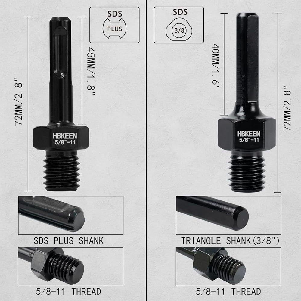 Upgrade your drilling setup with the HBKEEN 2-Pack Core Drill Bit Adapter Set, featuring a mixed combination of adapters: one 5/8"-11 male to SDS Plus shank adapter, and one 5/8"-11 male to 3/8" triangle shank adapter. These core drill bit adapters are designed to convert dry diamond core drill bits to work seamlessly with standard electric drills or SDS Plus rotary hammers. Whether you're working on tile, brick, masonry, or concrete, this adapter set gives you unmatched flexibility. Made from premium heat-treated steel, each drill bit adapter ensures high torque transfer, a secure fit, and long-lasting durability. The triangle shank adapter provides stability in standard 3-jaw chucks, while the SDS Plus shank offers secure engagement with rotary hammers. This dry core drill conversion kit is ideal for contractors, electricians, plumbers, and heavy-duty DIY users.