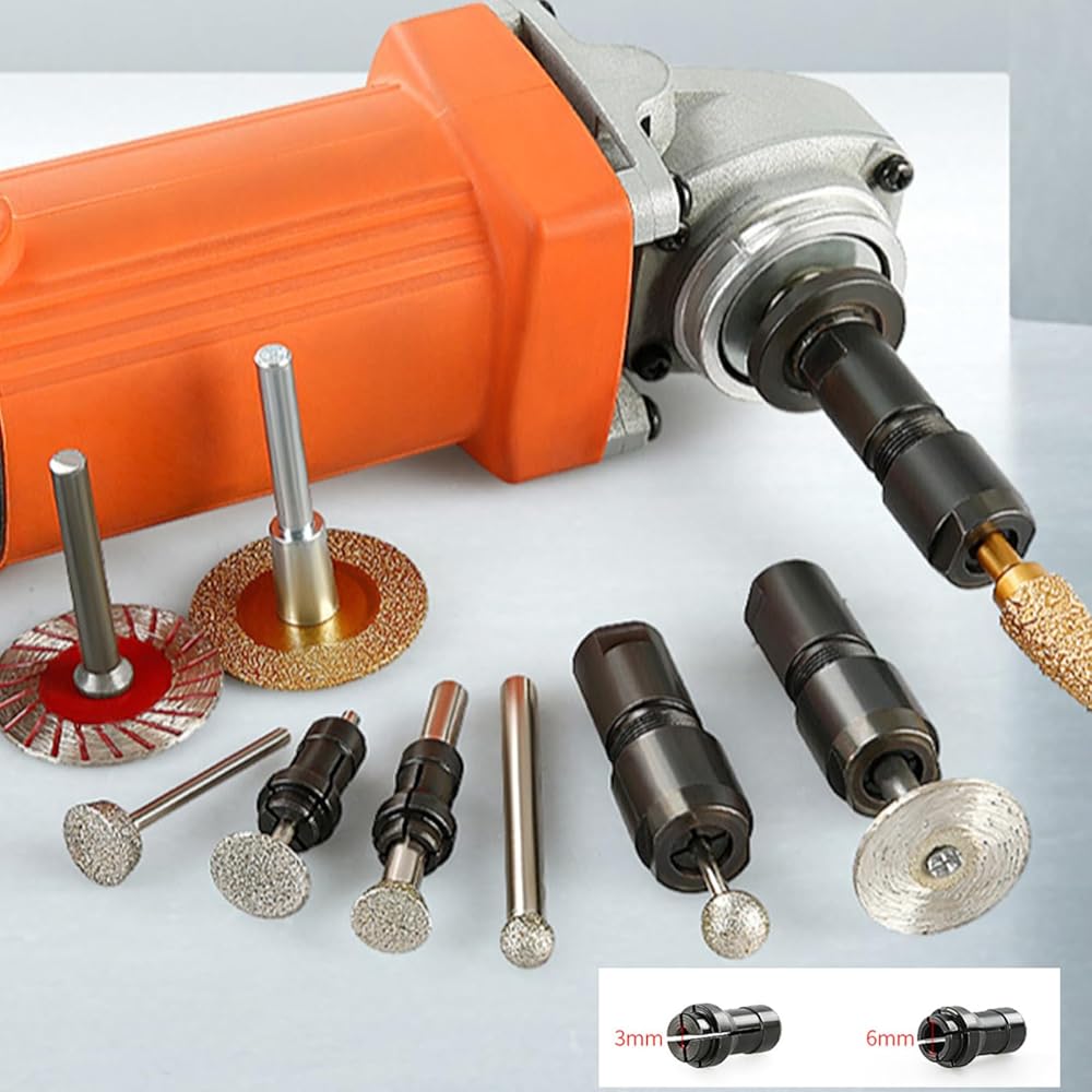 Turn your 100-Type Angle Grinder into a straight grinder with this M10-threaded adapter kit—unlocks drilling, polishing, and carving. It fits 3mm/6mm shank accessories (swap bits fast for DIY/pro projects), installs in 10 seconds tool-free, and features hardened steel build + heat resistance for 10,000 RPM wobble-free heavy-duty use.