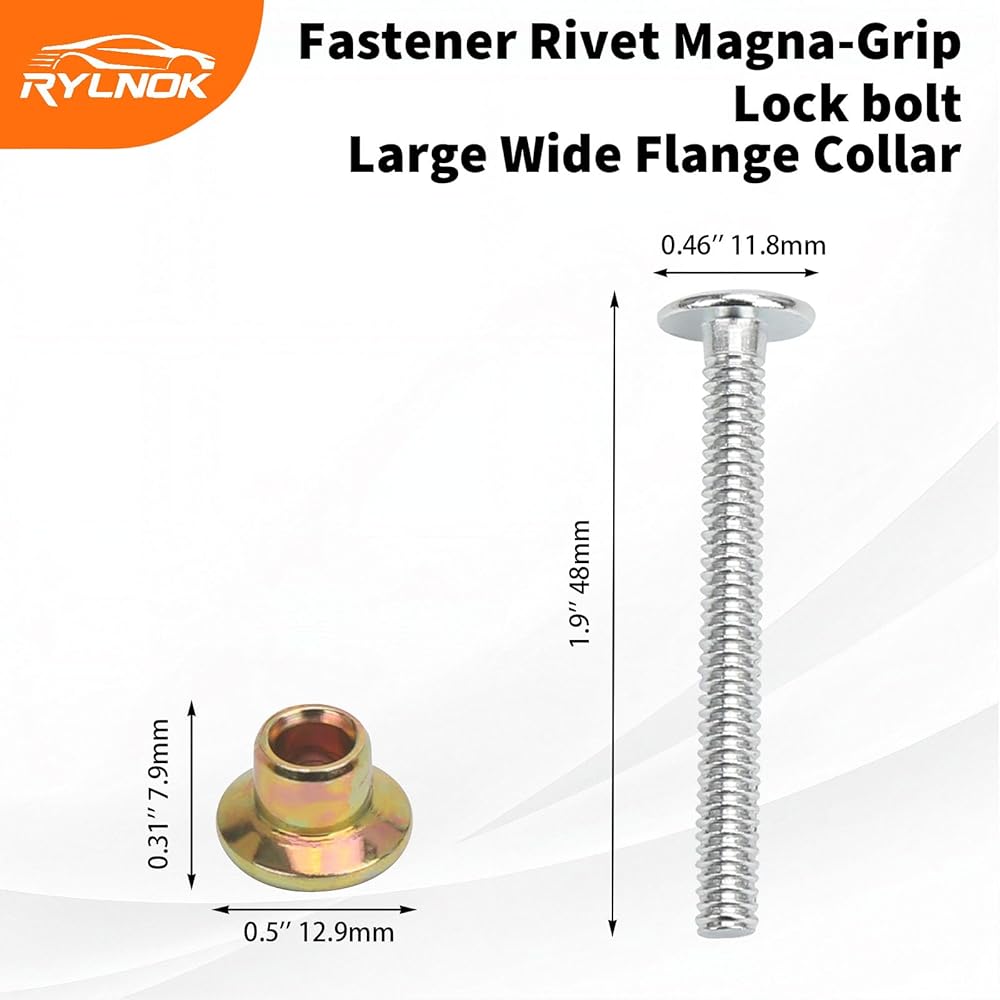 【🛒Package Contents】Rivet Huck Magna-3/16 in Grip Lock bolt * 100Pcs,3/16 in Large Wide Flange Collar * 100Pcs.