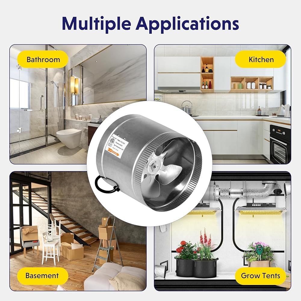Wide application: Exhaust air for HVAC to remove heats & odors or intake fresh air, used in grow tents, kitchens, bathrooms, basements, attics, garage, workshops etc.