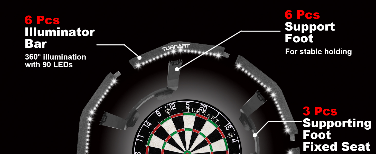 🥝🥝The Darts Accessories Includes: 6 LED strips, 6 support feet, 3 base plates, 9 mounting parts, and 1 power adapter. Tool-free assembly can be completed in just a few minutes – perfect for game rooms of any kind.