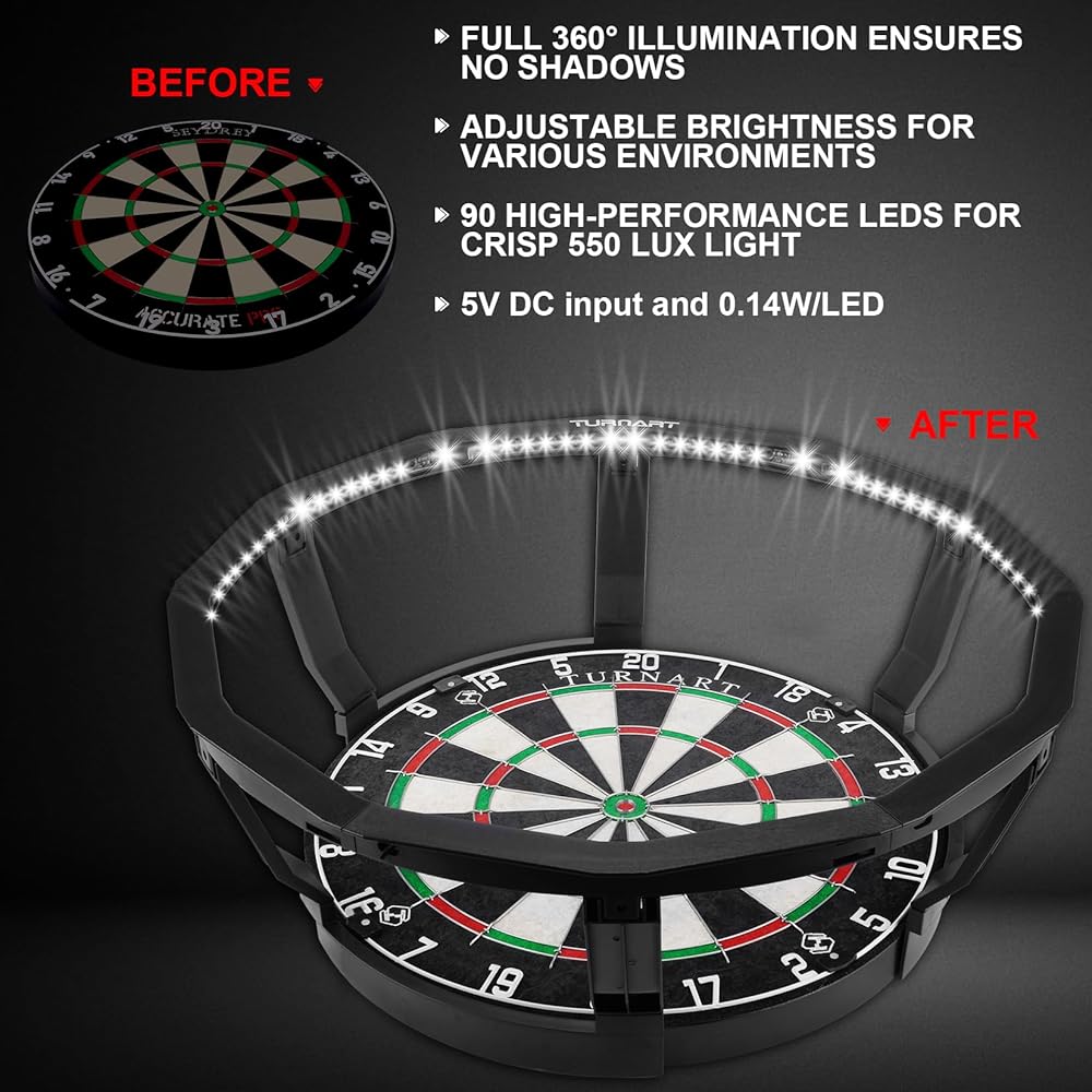 🍐🍐Competition-Ready Precision dart light: The 45 cm dart light perfectly covers the bristle dartboard. The 550 LUX focused illumination clearly highlights the 60 scoring segments.