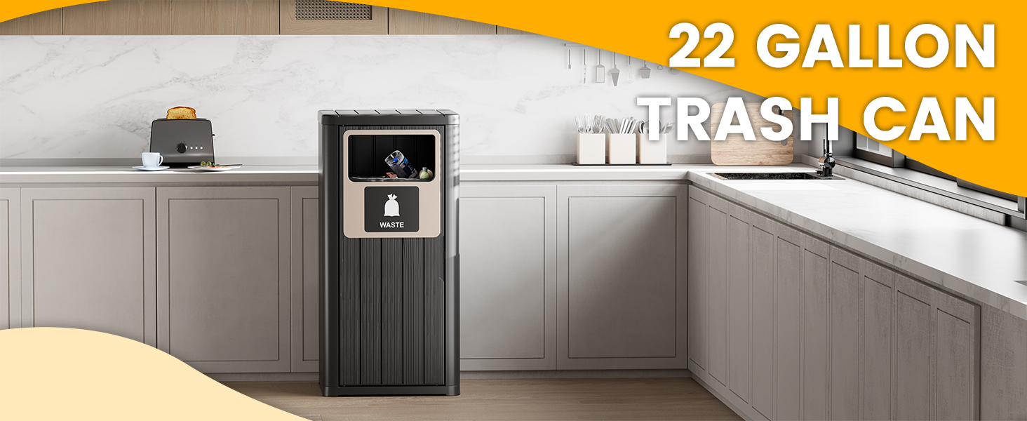 22 Gallon Outdoor Trash Can - This 16.6"L x 16.6"W x 35.4"H trash bin works with 25-40 gallon bags, making it perfect for both indoor and outdoor spaces. Its sleek design keeps your home and yard clean while looking great.