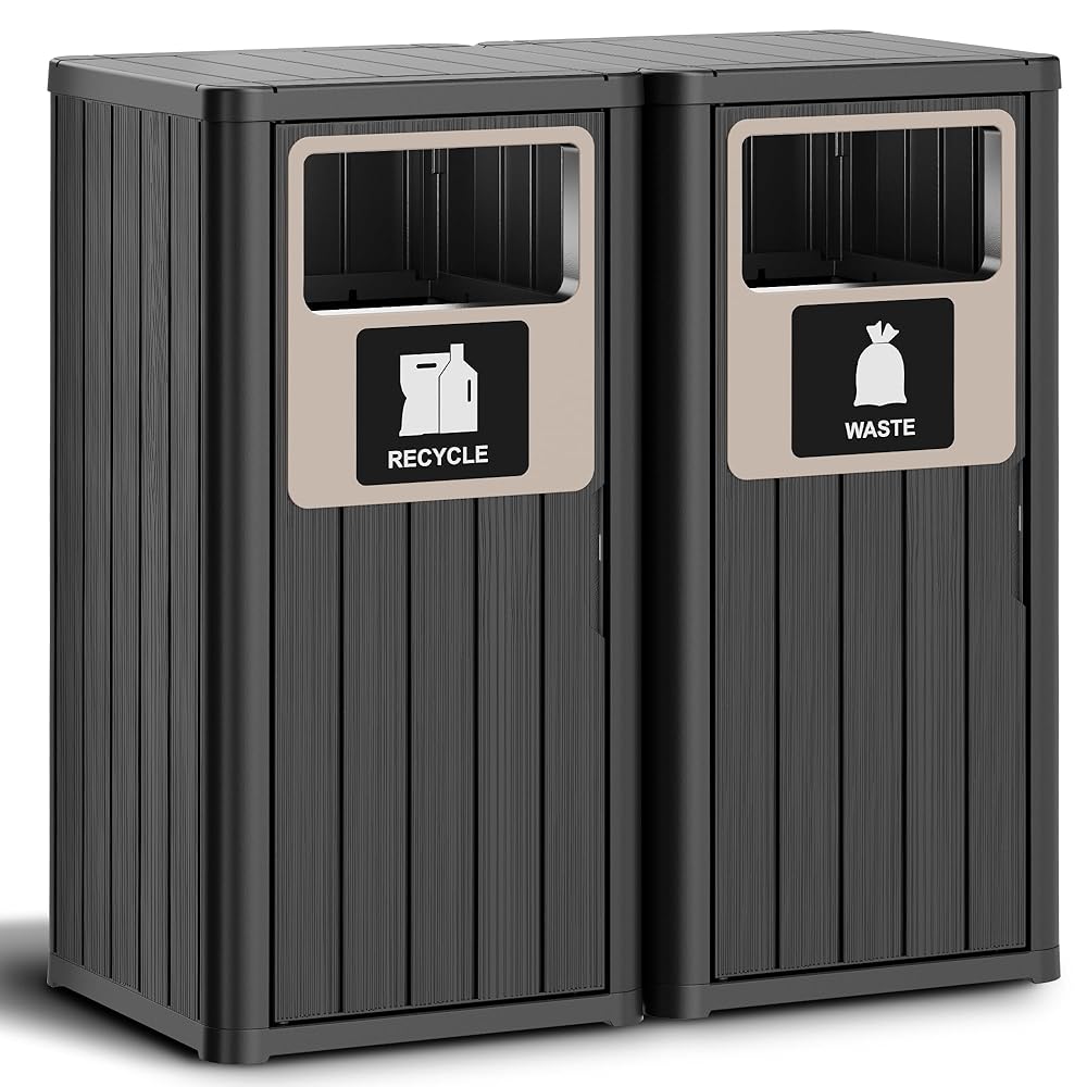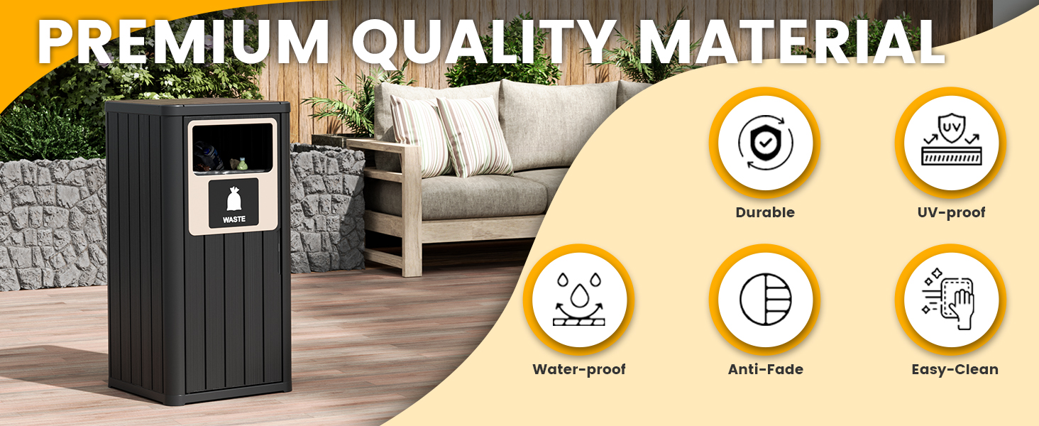 Weatherproof Material - This kitchen trash can made from tough recycled resin that stands up to rain, sun, and corrosion, built to last through any season.