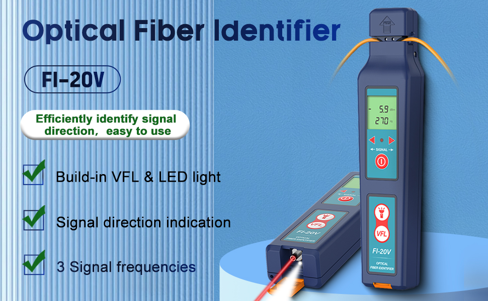 ORIENTEK OFI FI-20V Fiber Optical Identifier 800-1700nm All-in-one Chuck 0.25/0.9/2.0/3.0mm FTTH Tool with VFL LED -40dBm ~ 10 dBm