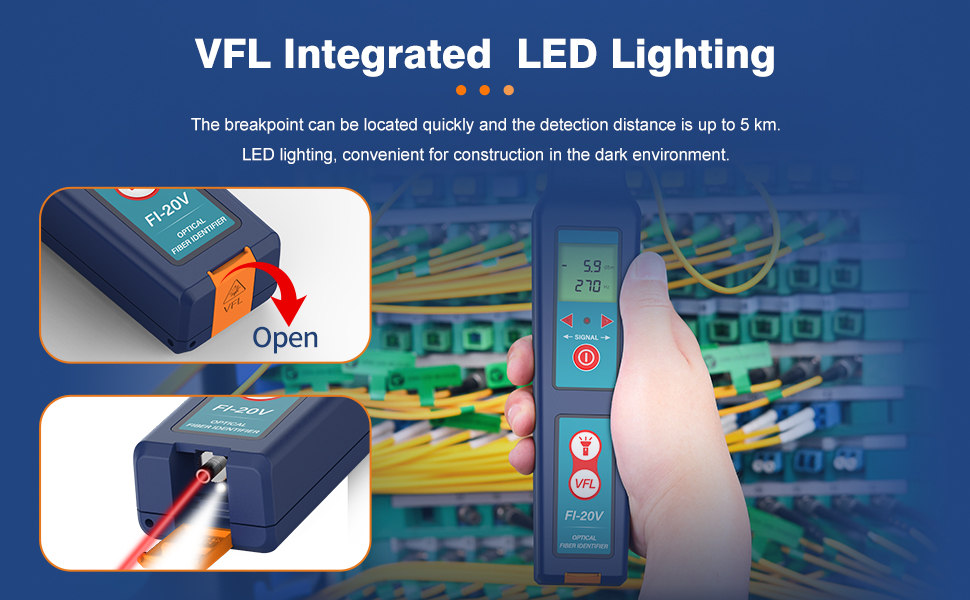 - Four: Configure VFL function; 2.5 mm universal; Test distance up to 5 km and high stability