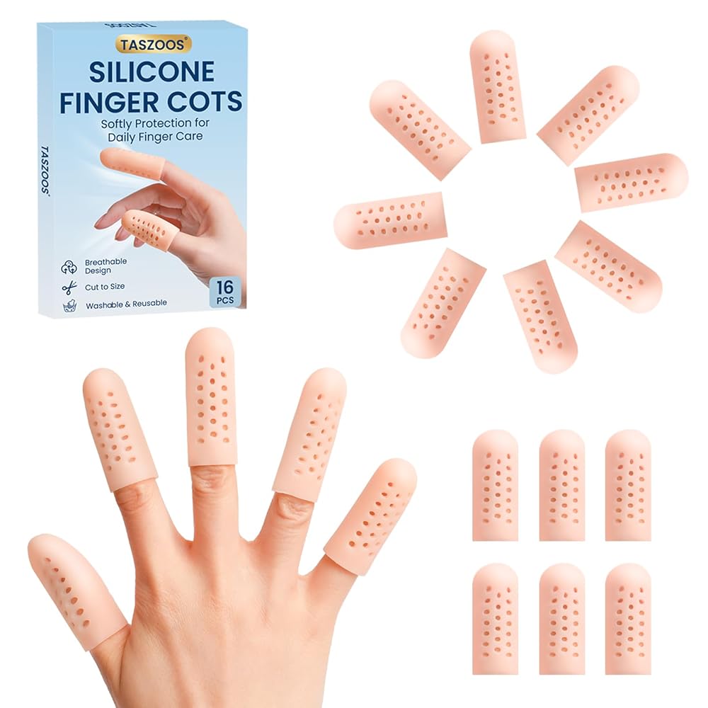 【PROVIDE GENTLE PROTECTION】TASZOOS finger protectors shield you from friction and pressure. They offer gentle support for conditions like arthritis, blisters, calluses, and finger cracking.Whether you're crafting, typing, painting, our silicone finger cots offer reliable protection and natural care.