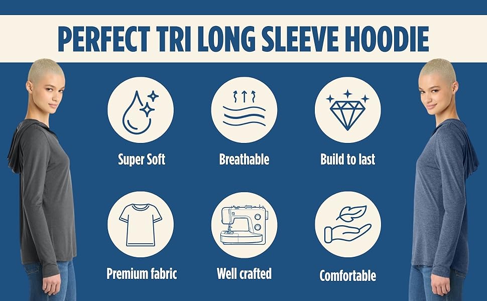 Soft Tri-Blend Fabric: Crafted from a 50/25/25 polyester, combed ring-spun cotton, and rayon blend (4.5-ounce, 153 GSM) that offers breathable softness with a flexible, lightweight feel for all-day comfort.