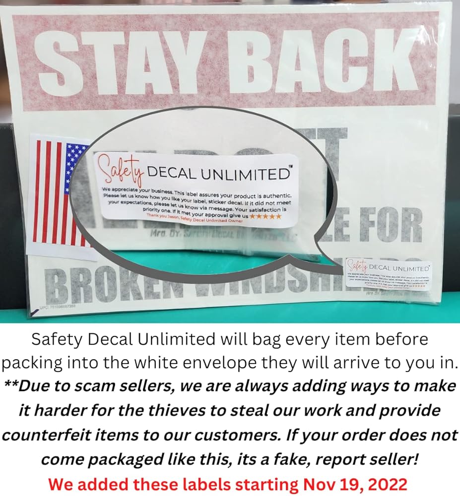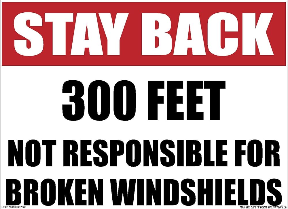 Stay Back 300FT Sticker Not Responsible Broken Windshield Sticker Safety Decal Unlimited Construction Truck 11 x 8 Label Sticker Decal Made in USA Stay Back 300FT