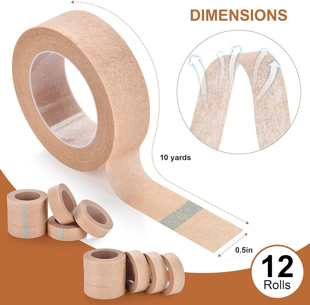 Medical Paper Tape 12 Rolls,Nose Tapes,Surgical Tape, Breathable for Sensitive Skin Wound Dressing Tape,0.5 inch x 10 Yards,First Aid Bandage,Earring,Face,Wound Care