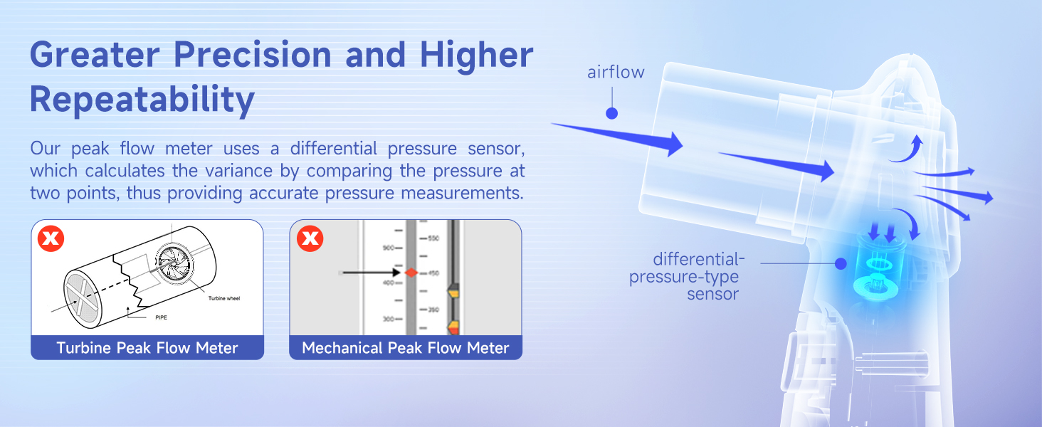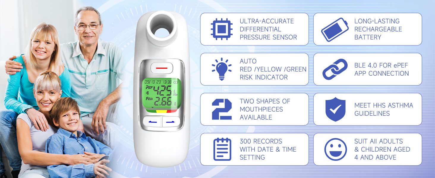 ● Our digital peak flow meter can connect to our tracking App via Bluetooth. Once the Bluetooth connects successfully, the data can be automatically synced to the mobile phone. You can share your results with your caregiver through our tracking & analysis ePEF App, allowing for better control of your respiratory health.