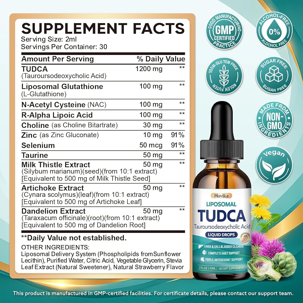 1200mg High-Potency TUDCA for Daily Bile Flow Support: Whether it's frequent dining out, high-fat meals, or a busy lifestyle, each serving delivers a full 1200mg of TUDCA—a naturally occurring bile acid that supports healthy bile flow and digestive balance, helping your body manage daily dietary and metabolic stress