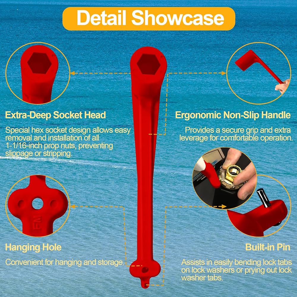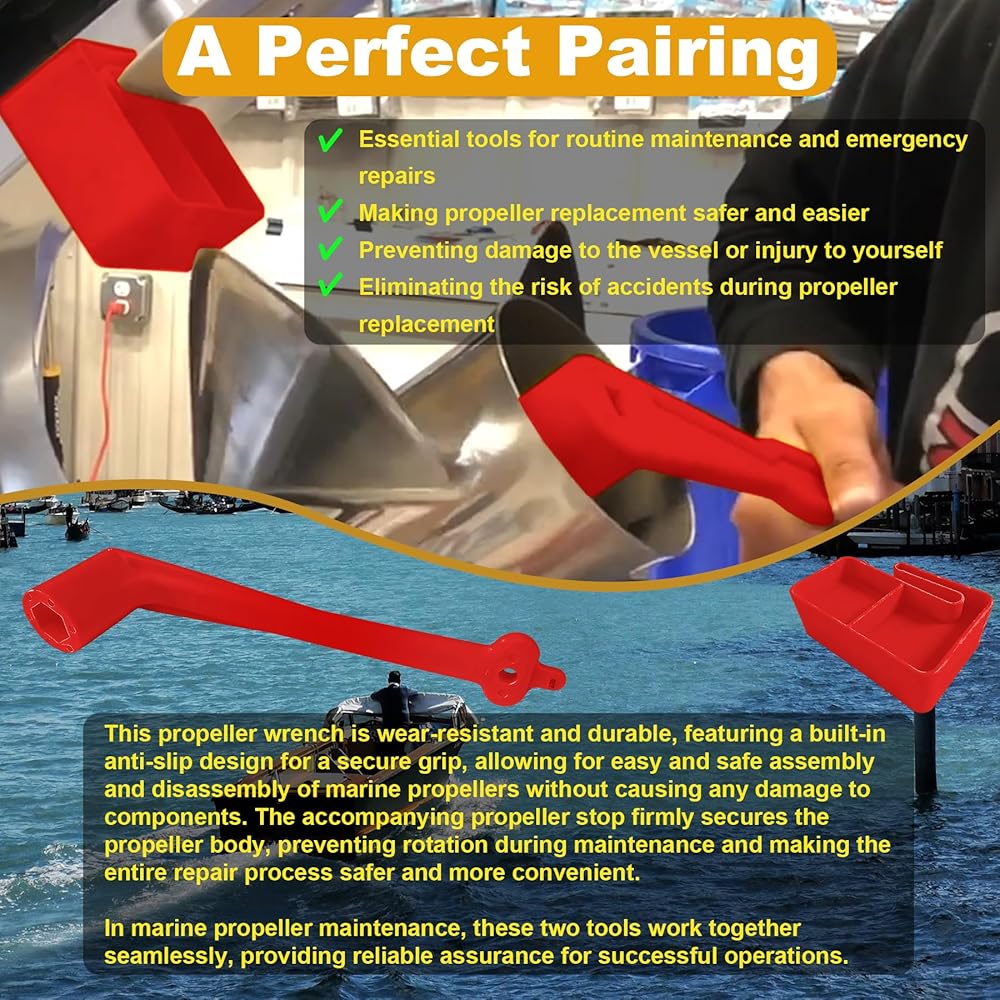 【Premium Materials】The propeller wrench kit is made of high-quality rust-proof plastic (marine-grade nylon), It can withstand harsh marine environments and long-term use, ensuring lasting reliability and protection. At the same time, it is made of highly visible bright red, which is easy to quickly identify on the ship.