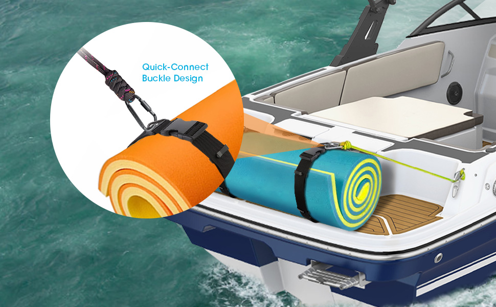 Customized Float Pad Adaptation: Specifically designed for floating mats, with a total length of 135 inches and a width of 1.96 inches. The adjustable webbing can be extended up to 3.4 meters, allowing for flexible securing of float pads of various sizes and thicknesses. Ensures the float pad remains securely fastened in waves, preventing slipping, accidental loosening, or drifting