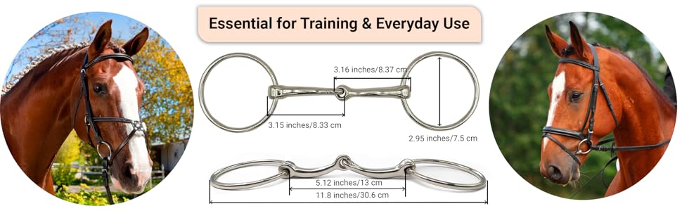 IDEAL SIZE & FIT: The rings measure 2.95 inches (7.5 cm), while the total length of the bit is 12.87 inches (32.7 cm). Whether you're using it as a bit for horses in training or for everyday riding, it offers a balanced and secure fit. Compatible with standard Western O-ring and English-style bridles.