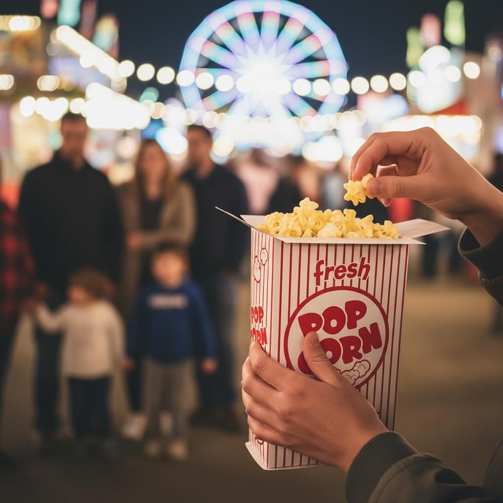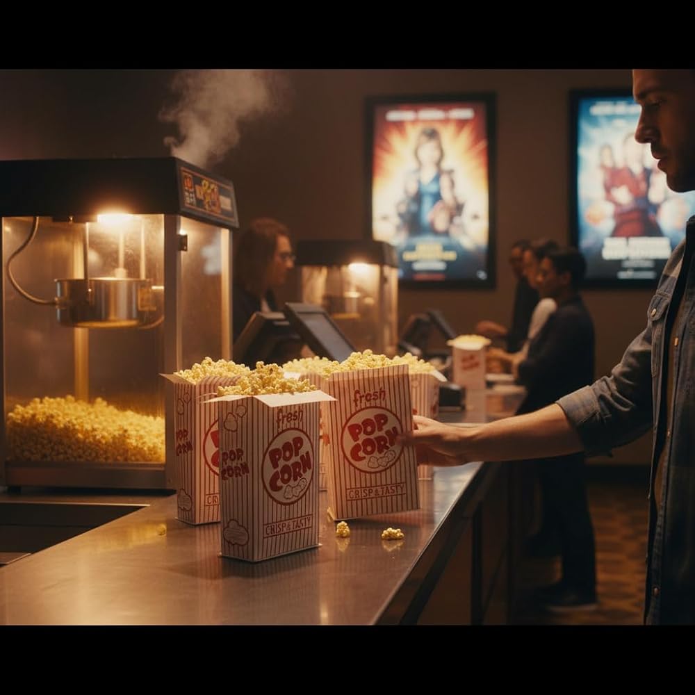 Simple assembly; our conveniently designed popcorn box is prepared for use by simply pressing the sides to open and pressing the bottom to lock in place for filling